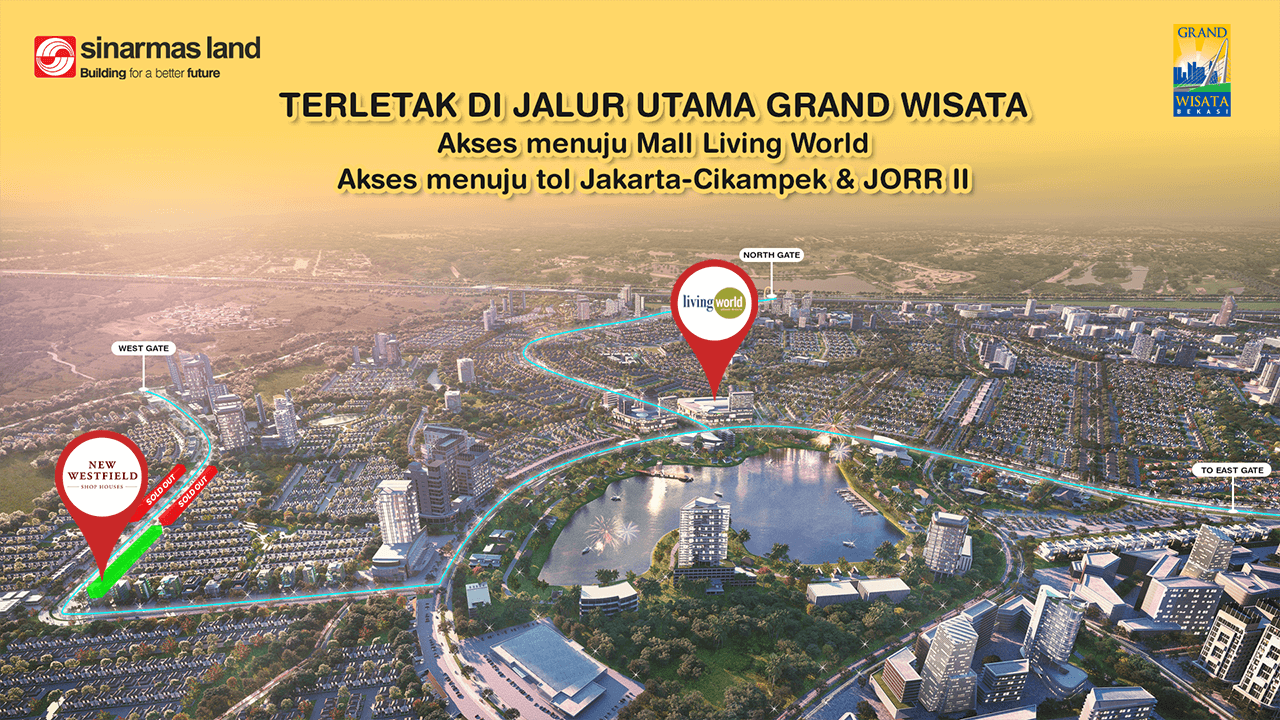 Ruko New Westfield Grand Wisata Bekasi terletak di Jalan Boulevard Grand Wisata yang merupakan jalan utama bagi penduduk dengan 30ribu pengguna jalan menuju ke Mall, jalan toll Jorr II dan tol Jakarta Cikampek setiap harinya. Design mewah dengan konsep modern dan open parking space/off street parking sehingga memiliki Ruko Westfield merupakan investasi cerdas untuk masa depan.